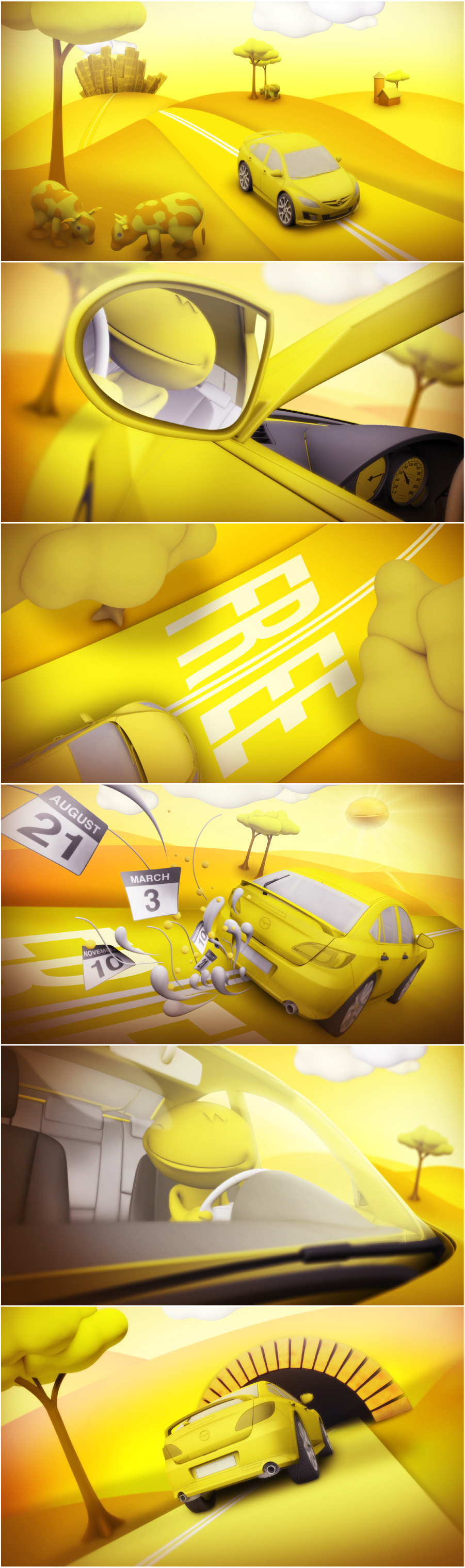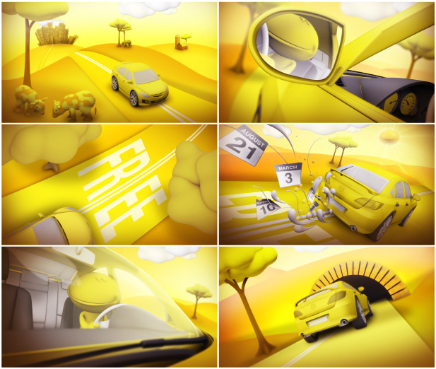 Taking a cue from the dynamic moves and camera angles typically seen in car commercials, Hertz's mascot, Horatio, goes for a little spin through the countryside.